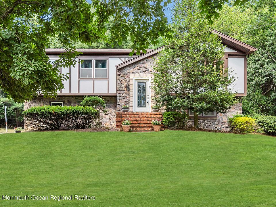 A rare opportunity! Priced to sell this home has so much potential for a low price in desirable Lincroft. Upper level features spacious dining room, living room/family room, 3 bedrooms, 2 full baths, eat in kitchen with sliders to elevated deck that overlooks the private backyard. Downstairs features possible Mother/Daughter with oversized family room, brick wood fireplace, half bath plus a second kitchen and possible 4th bedroom, walk out sliders to additional patio for entertaining or peaceful retreat! Update at your own pace and add instant value as you enjoy all the conveniences of living in this beautiful location and spacious home. Excellent schools, close to all shopping, transportation and beaches. Get into Lincroft at an affordable price!
