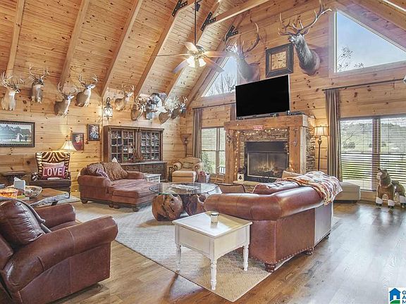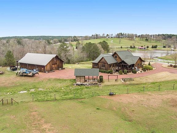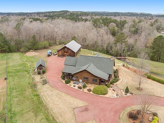 An Outdoor Lovers Dream Home Estate! A Custom Designed Log Home with stunning views of a fully stocked Trophy Bass Lake and a Raging Waterfall. Inside you will be amazed of the Signature Towering Cedar Trees that hold up the structure. The Large Open Den is mouth dropping with a Huge Gas Fireplace & Timber Beams from the 1800s. Entertain in a Large Dinging Room & Open Kitchen with Knotty Alder Cabinets & Whiskey Bar.The Huge Master Bedroom has 2 Large Closets,Master Bath has an awesome Jetted Tub & Separate Shower. The bedroom located off the master is great for a Childs Room or Office. Two more bedrooms are located in another wing of home that are a great size and share a bathroom. The upstairs Loft overlooks the Den and has a Beautiful View of Lake, Built-in Bed, Closet and a Custom Plasma Cut Scenic Railing. The Large Back Porch has a view of a Fenced Pasture & 40x60 Barn. Property is located between Tuscaloosa & Bham. Build a Family Legacy and experience the Outdoor Adventures!
