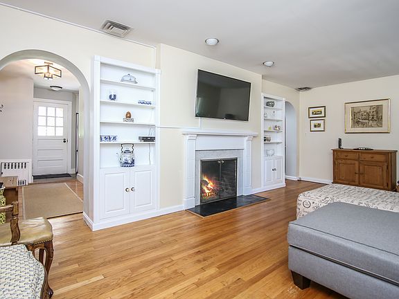 Walk into a welcoming foyer of this Mediterranean style house and immediately feel at home. Beautiful, expansive living room with a cozy wood burning fireplace and built-ins. Hardwood floors in living room and all 2nd floor bedrooms and hallway; porcelain tiles in kitchen and dining area. Kitchen was fully renovated one year ago and made into a charming and functional area with a peninsula that opens up to dining area with sliding glass doors to a cute brick patio and fenced in backyard. Quartz countertops and all new stainless steel appliances. Samsung double oven, dual fuel, 4 burners and a grill. Four good sized bedrooms and a hall bath complete the second floor. Basement with bonus room (ideal for nanny, au pair, housekeeper) and a small bathroom with shower. Laundry area with brand new washer/dryer. Attic is a pull down and has good storage space.
