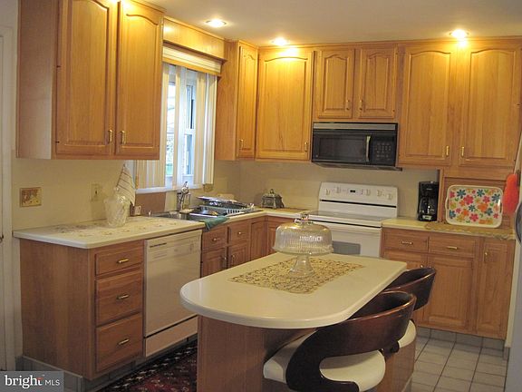 Need more living area or have an extended family? Then this 4 BR with 5th kid's size BR, 4 bath (3 w/showers), finished basement with 2nd modern kitchen w/snack bar, dining area, large family room , and 3/4 bath is just for you. Center hall foyer. Living room w/oak flooring, crown moldings, and large bow window for sunshine. Dining room with 10' custom built pecan hutch w/ 10 pull out drawers. Matching custom kitchen cabinets, center island and corian countertops. Patio off large 1st floor family room with polished oak flooring. Tiled 1/2 bath off family room. Second floor offers 4 bedroom's with large closets and 2 full baths. The 5th bedroom/playroom, for the kids, is large but has a sloped ceiling. That room is over the 2 car attached garage. All 4 baths have tiled walls and floor. The back yard is level and chain link fenced. With so much living space and quiet convenient location on a low traffic circle drive,this could be the perfect home for you.