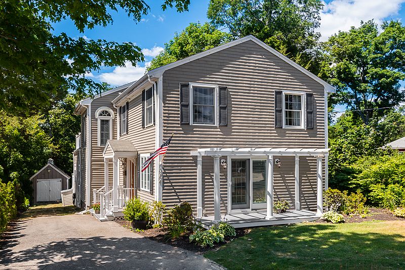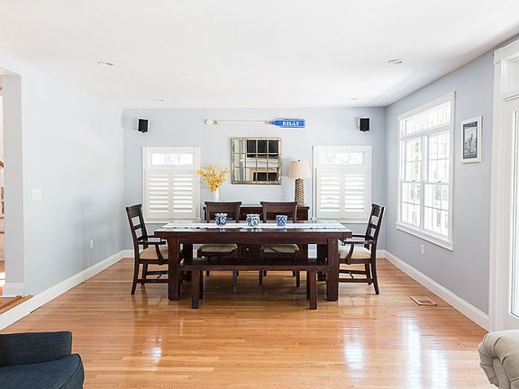 Beautiful Crow Point home with seasonal water views and a private neighborhood beach association! This lovely 3 bed, 2.5 bath home sits in one of Hingham's most desirable seaside neighborhoods. The 1st floor has a great open layout perfect for entertaining. Renovated kitchen opens into a gorgeous sun-filled living room with french doors that lead to a large deck overlooking the backyard & conservation land. Seasonally, take in views of the water & Hingham Shipyard. Kitchen flows to an additional room which can be used as a den, playroom, dining room, or office- a flexible space to configure however you'd like. 1st floor laundry, and 1/2 bath. Upstairs boasts a fantastic master suite w/ soaring ceilings, generous-sized bathroom w/ radiant heat & whirlpool tub, and a large private deck. Two other 2nd floor bedrooms and a sunny full bath round out this great house. Walk down the hill to the private neighborhood beach with swim dock, beach hut & walking trails to Shipyard & commuter boat! *OPEN HOUSE Sun 8/21 12n-2p!*