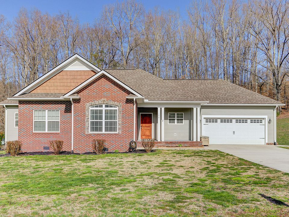 Curb appeal galore with this ~5 year old home with brick/vinyl exterior accentuated with stone. Covered front porch with tongue in groove stained plank ceiling and stamped concrete porch. Open floor plan with cathedral ceiling in living room, gas fireplace, large kitchen with island and gorgeous cabinets. Master bedroom w/trey ceiling, ensuite with soaking tub, shower, and walk in closet. 2 guest bedrooms share a hall bathroom. Carpet in bedrooms only. Large rear deck overlooking level back yard ~.47 acre. Come see this stand out home with custom feel today!
