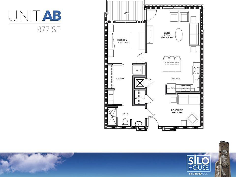 Silo House: a 103 unit condo building which includes a pool, grilling area, and fitness center. Units start in the high $100's and top out in the high $200's. We have a variety of floor plans available from one bedroom units, one bedroom + den units and 2 bedroom options. Delivery is anticipated to be late 2019.