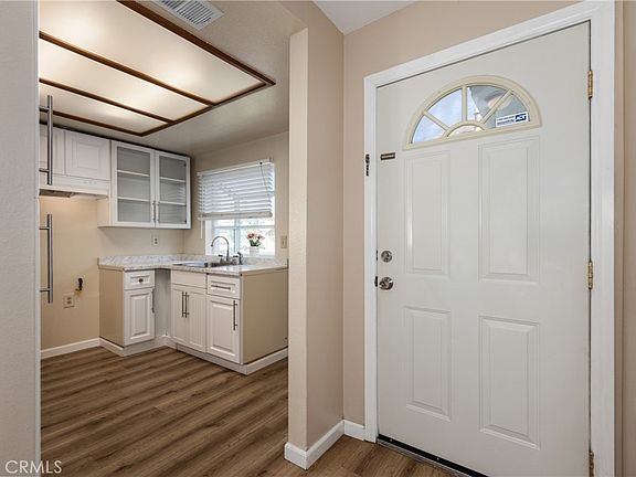Welcome to Colton's Iron Horse Ridge gated community! This 2 bedroom/2 bathroom single-story home is located on a corner lot, just around the corner from the community's southern entrance. This home has an updated kitchen with white cabinets and grey toned countertops, a garden window that lets in natural light and a pass-through between the kitchen and the main living area. The living area is an open concept with a fireplace and two sliding glass doors to the back and side yards. The primary suite has two closets and an ensuite bathroom with a vanity and a separate room with the toilet and shower while the second bathroom has a newer vanity. Flooring is newer engineered wood and tile. All windows are dual pane and have curtains or blinds. Laundry hookups are located in the two car garage. The backyard is easy to maintain as the entire back and side yards have concrete patios/walkways and mulch whereas the front yard has grass and mature plants. The monthly HOA is $130 and includes access to the park, playground, pool. This home is CENTRALLY located in Colton and close to the Rialto boundary and minutes away (or within a mile radius) from freeways, schools, parks, restaurants, shopping, the Colton Golf Course, Arrowhead Regional Medical Center and the California University of Science and Medicine.