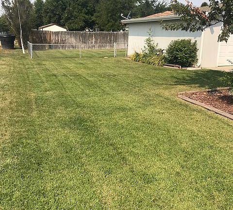 Fenced in backyard with shaded patio. Great for grilling with friends. We accept pets and the property is within walking distance to city park for walking. Two bedrooms, one bathroom with washer and dryer hookups. Hardwood floor in the living room and carpeted bedrooms. Tenant responsible for gas and electricity to the utility company, and a flat rate for water, sewer, and trash of $75/month in addition to rent. Credit score of 625 or higher to qualify to rent. Apply on Zillow easily.