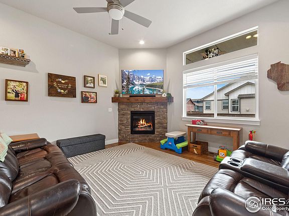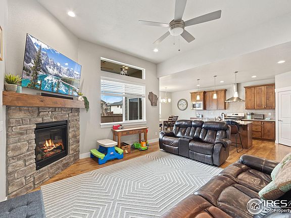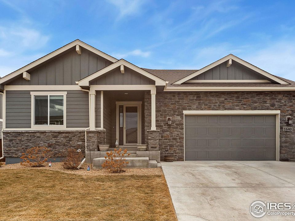 Welcome to 1640 Black Kettle Street, a beautifully crafted home in Loveland's sought-after Eagle Brook Meadows Subdivision. Built by Bridgewater Homes, this residence features the popular Amelia floor plan, offering a seamless blend of style and functionality. Step inside to a warm and inviting main level, showcasing wood flooring, granite countertops, and a cozy fireplace. With three main-level bedrooms, there's plenty of space for family or guests. The expertly finished basement expands your living space with a large rec room, a wet bar, two additional bedrooms, and a full bathroom-ideal for entertaining or hosting visitors. A radon mitigation system is already in place for added peace of mind. Outside, enjoy the fully fenced backyard with a covered patio, creating a private retreat for relaxation. The oversized 850-square-foot garage provides ample space for vehicles, storage, or a workshop. Home has been pre-inspected.