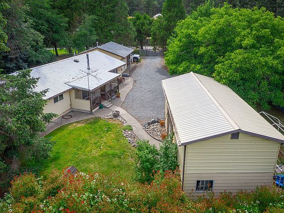 Sweet country living in this 3-bedroom, 2.5 bath, 1782 sq. ft., all one level living area. Spacious open floor plan with hardwood floors in main areas. Certified wood stove, updated vinyl windows to keep it cozy. This flat 1.01-acre property is fenced with a gated circular driveway. Ample outdoor storage with detached garage and shop, detached hobby room, metal RV barn and 2 other metal storage sheds. A cross fenced garden area with raised beds. Small orchard of apples, pears, plums, grapes and walnut trees. 2 good wells (per owner) on property, 1 well is shared with the neighbor for drinking and one for irrigating plus weekly irrigation rights from Williams Creek. Come see this charming property. All information is deemed reliable but not verified; anyone considering purchasing this property should perform their own investigation into the uses and condition of the property. Agent is related to seller.