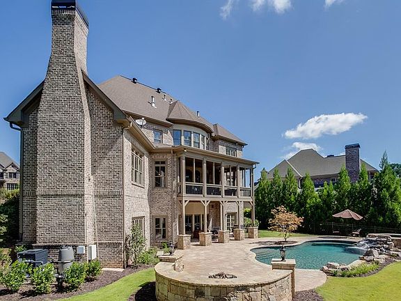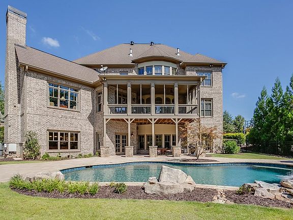 Exquisitely finished executive home with resort style pool/spa, theater room and private wooded backyard backing up to a natural creek. Located in TURNBERRY - GATED, Swim/Tennis Community in LAMBERT School District. Home has outstanding level of fit and finish with 3 stone fireplaces, 10 foot ceilings, un-matched molding, trim, and premium cabinets, counters and appliances. The fully finished basement has a separate kitchen and bar, billards room, family room, theater and work-out room with pool view. Breakfast room opens to a covered screened in porch with pool view. Audio system indoor and outdoors.
