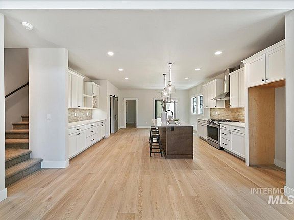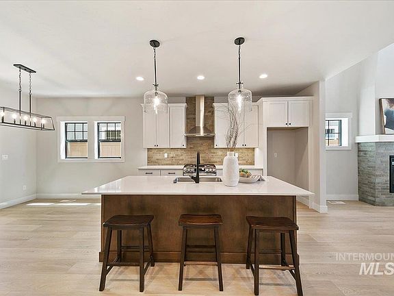 Discover the perfect blend of style, comfort, and convenience in this beautifully crafted home nestled in a quiet boutique community—just a short stroll from all the charm of downtown Eagle. This thoughtful floorplan offers 3 outdoor spaces to enjoy including a large covered front porch, private side courtyard (w/ gas stub), & upper balcony overlooking Dry Creek Canal. Indoors, the natural light floods the great room w/ soaring 18’ ceilings beautifully highlighting the tapered gas fireplace & exposed beam accents. The central kitchen is the perfect place to gather w/ huge quartz island, dove-tail, soft-close cabinets, upgraded appliances, buffet bar w/ open shelving, walk-in pantry, & durable LVP throughout main level. Must-see primary suite has spa-like bathroom w/ bathtub, separate walk-in shower, & dual vanities. Custom details throughout, deep alley-load garage, full landscaping, Energy Star certified, & more! Perfect for lock & leave living.