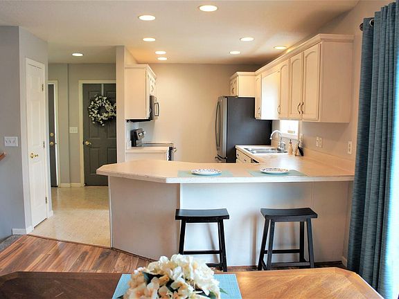 So much to offer. Charming, comfortable, and cozy convenience of a condo with the feel a 4 bedroom, 2.5 bath home with 2 car garage (2244 sq ft). Laughter and fun lit the neighborhood as this perfectly placed home on a wide,large corner lot hosted a graduate's open house. Freshly decorated for an HGTV feel with crisp neutral tones, designer-styled painted cabinets, eat-in kitchen counter that flows to the brightly lit dining area, and open living room with vaulted ceilings with rustic skylights. This condo doubles in size when you enter the well appointed basement with a large, bright family room for movies, or game night, stylish bathroom, and two large bedrooms (one with walk-in closet). Home has been pre-inspected for ease of the buyer's mind. Picture yourself in this home.