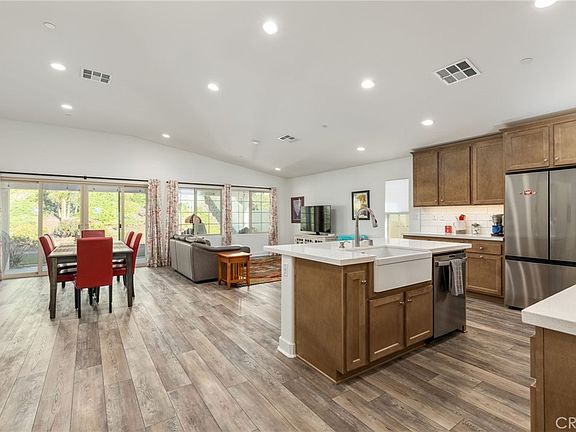 Welcome to this vibrant, 55+ community and resort style living of Altis in Beaumont. This Gorgeous 3-bedroom, 2-bathroom home on a premium lot offers every detail thoughtfully designed to enhance your everyday living. This home was built in 2022 and is loaded with premium upgrades and smart features like ring doorbell, Alexa and Wi-Fi features, PAID SOLAR, and a tankless hot water heater. These energy-efficient additions provide you with long-term savings and eco-friendly living. Inside, you are welcomed by an open concept living area, complete with high ceilings and beautiful upgraded luxury vinyl flooring. The kitchen is a chef’s delight, with high end appliances, farmhouse sink, walk in pantry and generous counter space, with plenty of space to entertain and host guests. The primary suite is your private retreat, a spa-like bathroom designed for the ultimate in relaxation. The laundry room has been upgraded as well with a utility sink and cabinets. Step outside through 10' center opening sliding doors to your professionally landscaped, low-maintenance backyard, which sits on a premium lot and includes an alum-a-wood patio cover, a weber gas BBQ and Cuisinart chimenea for relaxing outdoors. The oversized garage is a dream "man-cave" with built in shelves, a rolling work bench and peg board for hanging tools. The Altis Community offer walking trails, a 16,000 sq ft VUEPOINT Clubhouse with a fitness center, fitness studio, massage room, 2,100 sq ft lap pool, 4,300 sq ft swimming pool, poolside lounge, whirlpool spa, BBQ areas, firepits, five pickle balls courts, card room w/private lockers and bar. Close to 3 Public Golf Course and Major Shopping, this home offers a blend of luxury, comfort and convenience. Come make this your home!!