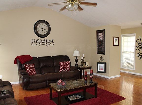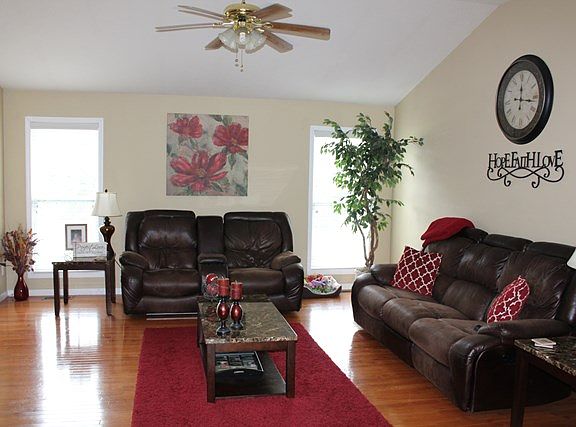 Beautiful 3 bedroom 3 bath split bedroom plan, hardwood, tile, vaulted ceiling, separate dining room, finished basement, large family room with hall bath. Large lot, dog kennel in back DOES stay.