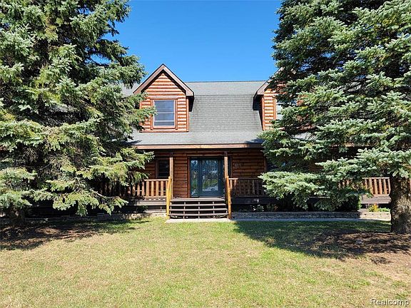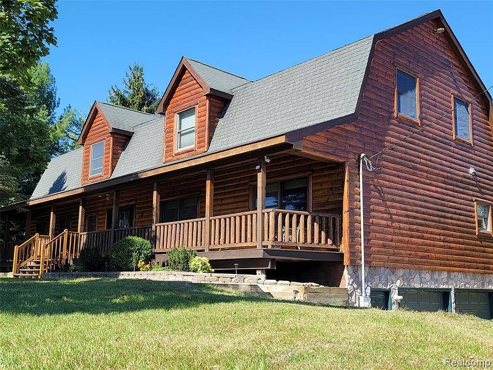 Amazing Country Log Home on 10 acre Horse Farm. Nearly 4,000sf of custom living space. Large open living space built for your large family to enjoy. Granite Kitchen with built in fridge. Large master bedroom with sitting room that is on the main floor. large open front porch and a large enclosed rear porch. 2 loft areas and theater room. 2 large barns, one is set up for horses 48x40 with 4 stalls and other is currently a working body shop with paint booth 40x50 with its own septic and bathroom. Fully stocked pond, 3 story hunting blind or kids play house, 2 RV hook ups with electric and clean out stations. RV will fit in horse barn. UVerse internet service 100mg+, basement plumbed for lower bath. There is so much to this property that space is limited for full description, its a must see.