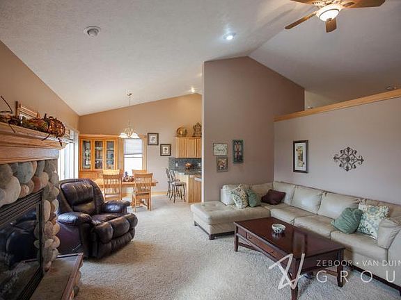 Don't miss this charming move in ready home with all the features you will want in Byron Center schools! From the moment you walk through the front door you will feel at home with the cozy living room with cathedral ceilings & gas fireplace. The home has a large kitchen with peninsula with bar seating, stainless steel appliances and solid surface counter tops. The dining area walks out onto the extra long deck that runs the entire length of the house and connects to the master suite! The home also backs up to the community common space so you have no immediate houses right behind you. The master suite also features cathedral ceilings plus a walk in closet and private bathroom with double sinks, separate shower and Jacuzzi tub.