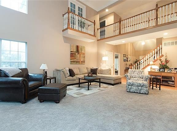 Continue to Show! Spread Out Space You Won't Believe!! 2 sty Great Room with 2 sty fireplace surrounded by Paladian Windows. Foyer greets you past the large Dining Room. Enjoy your Master Bedroom with tray ceiling and his and her closets plus custom Master Bath with separate tub and shower on the first floor. Kitchen has upgraded Cherry Wood Cabinets, walk-in Pantry, Center Island & updated ceramic flooring! Walk onto your Deck overlooking wooded common ground from Kitchen & Great Rm. 2nd flr has 4 Bedrooms- one currently used as an Office! Enjoy the open space of this great floor plan that also offers such privacy. With even more space, it's party time in the Finished 9' Pour Lower Level with Surround Sound, Exercise/Play RM, & Sleeping/Bonus Room along with Rec Room and Family Room. LL walkout to backyard, too! Zoned Heating/Cooling! Lawn Sprinkler! Roof 2.5 yrs! Security System! 3 Car Garage! Rockwood Schools! Convenience to Shopping and Highways! See This Beauty Today!