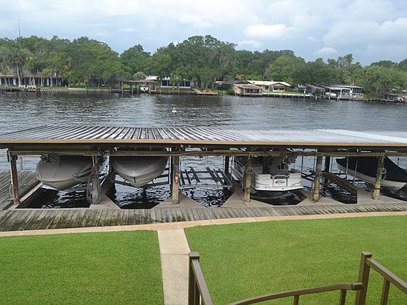 RIVERFRONT LIVING AT IT'S BEST!! Move in ready. Completely updated 2 bedroom 2 bath condo overlooking the over 300 mile long St John's River. Home features a tankless water heater, crown molding thru-out, ceiling fans, double pane windows and sliding glass door, recessed lighting, large pantry, silestone counter tops in kitchen. Both bathrooms has walk in glass showers and solid surface sinks. New A/C unit. Includes all the appliances. Sit on the back porch for relaxation or watching the boats go by or throw out a line and catch dinner from the dock. Boat slip and parking is assigned. Community swimming pool (heated). Come and enjoy the good life!