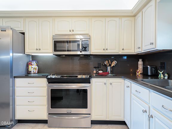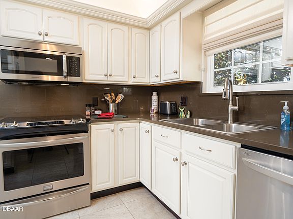 This immaculately kept 2-bedroom, 2-bath completely remodeled second floor condo on the canal, just a stone's throw from the St. Johns River, is luxury living at its finest. Your new home provides a covered boat dock with electric lift, making the rides to Lake George, Silver Glen, Salt Springs, or Jacksonville a breeze. Major recent upgrades include a 2019 roof, 2020 HVAC system, 2021 hot water heater, and the building was completely repainted in 2022. Inside, practically everything has been replaced from floor to ceiling including oversized tile flooring, fixtures, paint, sinks, toilets, and cabinetry. The completely updated kitchen includes quartz countertops with matching outlets, stainless steel appliances, an abundance of cabinetry with undermount lighting, and the reach-in pantry includes four slide-outs, making finding those cookies practically effortless. Crown molding, chair rail, and 5" baseboards beautifully adorn this home, as do dual pane, energy efficient newer windows. The main living area has a spacious feel and flows out to the 21' X 5' screened patio, which is the perfect place to enjoy a cool beverage while looking over your covered boathouse and canal. The 14' X 12' Owner's Suite includes two closets, plantation shutters, and boasts a completely updated private bath with step-in shower. Covered parking, dimmable lights, magnet-held doors, ceramic tile on the porch, I could go on and on... there are simply too many features to list here, so call your Realtor for an additional list of upgrades. Some furniture may be negotiable. All measurements are approximate and should be independently verified.