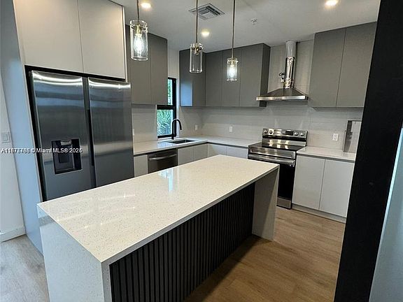 Absolutely stunning BRAND NEW townhouse. This unit boosts 2200 sq.ft. of stylish finishes. Custom-made kitchen with stainless steel appliances, wooden floors throughout, complete washer and dryer, one car covered garage, full size bathroom and walk in closet in every bedroom. Be the first to live in this hip and modern 3-bedroom townhouse located in the heart of Hollywood. Just east of US1 and close to shops, downtown Hollywood and beaches. 2 MONTHS TO GET IN!! No services included - water, FPL, cable and internet must be paid by tenant. Requirements: Proof of income (2.5x the rent), clean background, no evictions, First/Security. Available November 1st