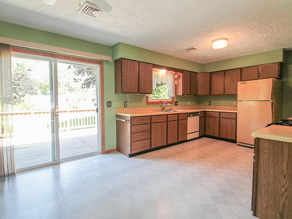 Ranch home close to Brown's Lake and golf course w/3 bed; 2 1/2 bath on lovely lot on a quiet, dead-end street. Gas fireplace in the living room and a 5-panel picture window. Completely remodeled kitchen with plenty of cabinets, new seamless counter and ceramic tile, neutral floor. Two and a half car attached garage, large, railed deck and a partially finished basement w/full bath, large workshop, laundry room, recreation area and more. Back yard is beautifully landscaped and is fenced in.