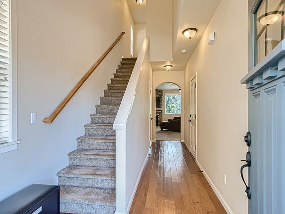 Hardly lived in home w/amazing backyard. A must see work/craft shed, fruit trees & covered patio. 3 car garage one extra deep, great for truck or boat. Huge vaulted master w/view of backyard. Great floor plan, beautiful kitchen w/pantry, stainless appliances, refrigerator included. Gas fireplace, A/C, washer & dryer too! Check out the upgraded floors, blinds, rock fireplace & ceiling fans. The neighborhood has so much to offer, one of the best lots. Come see this gem you will love this yard!