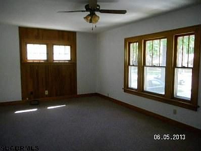 Location, Location, clean and ready to go. How about 2 one car detached garages for all the toys. Chain link fence, CA, updated electric furnace, some newer windows on main, can have a wood stove as chimney is in place and brick wall in basement. Formal dining room has hardwood floors and corner hutch. Main floor does have hardwood floors under carpet according to seller. Take a look!
