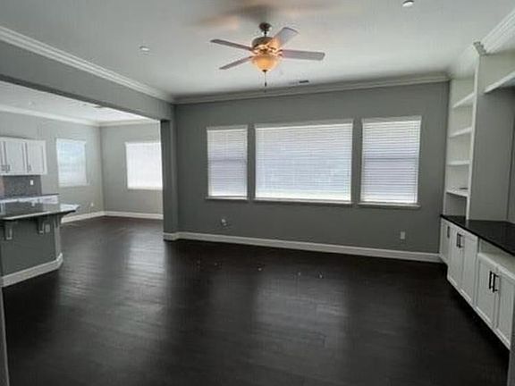 Beautiful 5 year old 3/2 home in Santana Ranch! Brand New K-8th grade school blocks away! Freshly painted with beautiful neutral colors, crown molding and vaulted ceiling's. Built-in wall unit in living room with custom made walnut counter tops. Upgraded built-in cabinets and drawers in large walk-in closet in master room. The home includes a beautiful four door Samsung stainless steel refrigerator as well as full functioning washer and dryer. Large back yard with stamped concrete and beautiful grass area. Comes with a swing set and pergola ready for entertaining! Large built in fire pit and multiple fruit trees. It's in a great quiet neighborhood! At this time there are no pets allowed but that could possibly be negotiated. No smoking allowed in home. Owner will pay for pest control. Renter will be responsible for all other utilities and up keep of front/back yards.