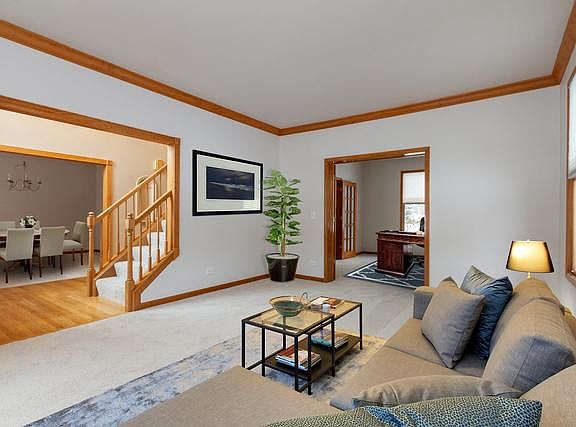 Move right into this stunning, updated home in Crystal Lake. This home features tons of natural light, 6 panel doors, updated lighting, custom crown molding, and new A/C, furnace, water heater, humidifier, roof, driveway, and new paint and carpet throughout Dramatic two-story foyer opens to a spacious living room with french doors to an office with an additional set of french doors!! The formal dining room leads to a butler's pantry~perfect for entertaining. The updated gourmet chef's kitchen features 42- raised panel cabinets with bead board side panels, granite countertops, beautiful back-splash, new stainless appliances, an island with cook-top, and large eat-in area with slider to brick paver patio. Cozy up to the gas fireplace on a cold winter's night in your family room with recessed lighting and vaulted ceilings. Upstairs there is a huge master suite with double doors, sitting area, a separate makeup/vanity area, walk-in closet, and a master bath with double sinks, tub and separate shower. The spacious basement is waiting to be finished for even more additional living space. Enjoy the picturesque, professionally landscaped yard from your paver patio. The home is wi-fi enabled to control the climate (Nest), and garage door (Craftsmen). This home has everything