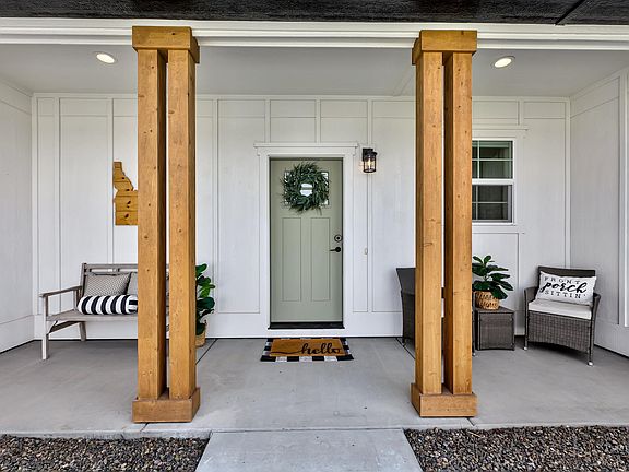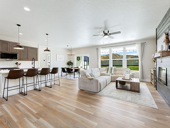 This practically brand new, immaculate, & thoughtfully designed home features a desirable split floor plan & open-concept w/ natural light & custom floor to ceiling fireplace. Kitchen boasts upgraded LG appliances, farmhouse sink, soft-close drawers & cabinets, USB charging ports, an expansive walk-in pantry w/ a butler’s counter & extra outlets. Quartz throughout. All rooms are pre-wired for ceiling fans, & the primary suite is designed w/ comfort in mind. Additional upgrades: fully wood-wrapped windows, 6” baseboards, matte black fixtures, & pocket office. The oversized laundry room has cabinets, a butcher block folding counter, & utility sink. The expanded garage includes an 8’ extension & 8’ header. Step out back and enjoy the 36’ x 14’ covered patio, east-facing mountain views, sandbox area, garden-ready drip system and low maintenance landscape. Lastly, your converted shed which doubles as an office/gym/flex room has fully finished interior, electrical, & air conditioning. Come & see!
