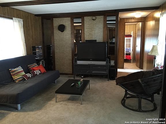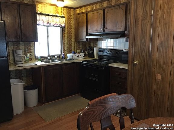 One of the original fishing settlements in Canyon Lake! Well taken care of older single wide unit. New flooring, plumbing and electrical. Split floor plan with a Bedroom and Bath on each side of the home. Yard is maintenance free with detached carport and storage shed. Large deck in the front. Very quiet subdivision with a huge WATERFRONT Park, private and ready to enjoy with entry gate access. Cash only.