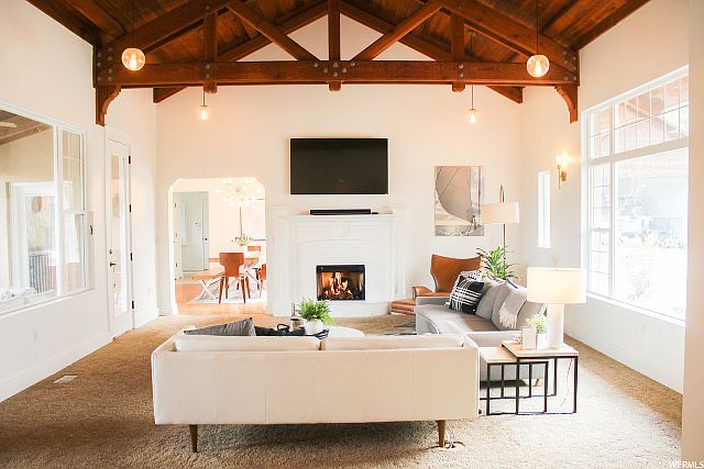 Private luxury living in Kaysville. Come and experience this one of a kind custom rambler. This homes ability to connect the inside with the outside natural surroundings is second to none. Nestled on almost 1 acre and surrounded by a year round natural stream you can hear throughout the home provides unique tranquility. The home is full of absolute charm with 16ft vaulted ceilings featuring exposed structural beams, an imported dutch sitting bench, large windows and a huge master bedroom all combining to make this feel like home. The home was also built to entertain with multiple decks to view the yard, an integrated sound system throughout the inside and outside spaces and a downstairs walkout basement with a second kitchen, theater room, and a simple in home gym. The home also comes equipped with a the heated garage, and an oversized detached garage with a 14ft door perfect to store your RV or boat. Words cannot explain the feeling of this unique property.
