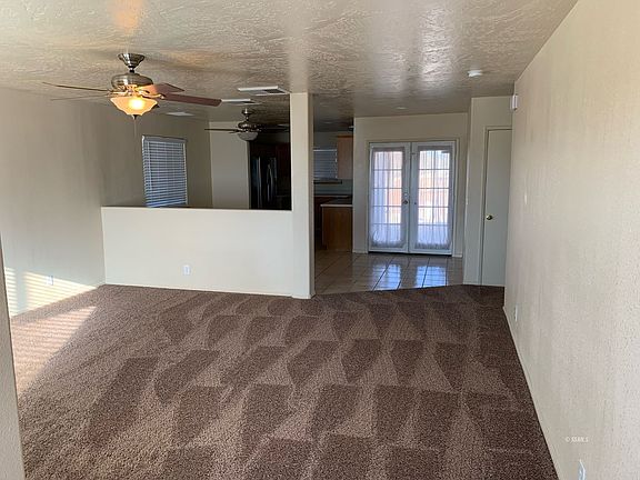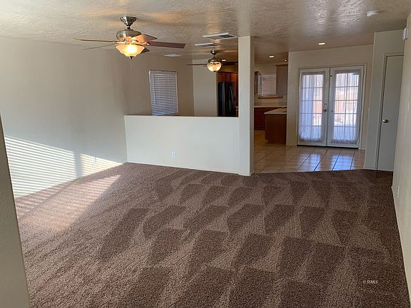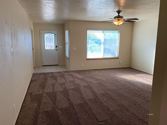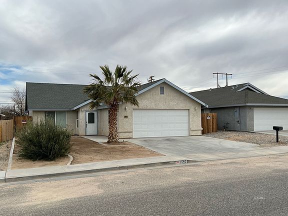 Make this 3 Bed 2 Bath your new home! Built in 2005, this house has an inviting and functional floorplan. Walk into the family room which has a half wall to the dining room, great for socializing and entertaining! New carpet and fresh paint throughout the house. The kitchen has oak cabinets and Formica countertops. Walk down the hall to the bedrooms and the centrally located indoor laundry. All bedrooms have ceiling fans and window coverings. The bathrooms are generously proportioned full baths with tile floors. The front yard is low maintenance and features curbing, palm tree and drown resistant plants. The back yard is nice sized allowing for many outdoor activities. The house is located on the edge of the city limits so you have the city benefits but right across from the county, easy access to desert for walks, hikes, bike rides, off-road vehicles and more. Don't missout on this great home!
