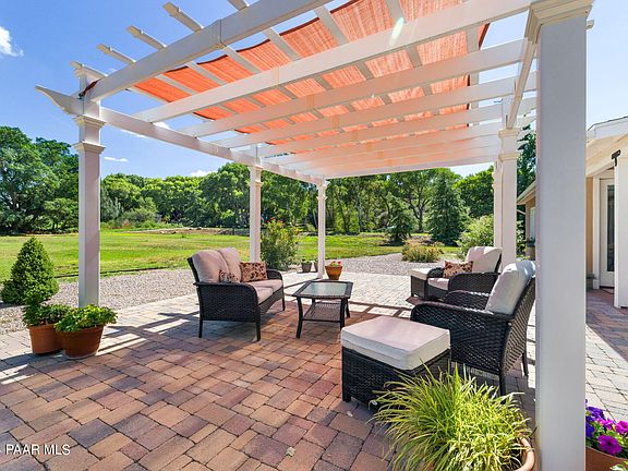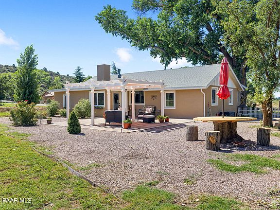 Serenity is the feeling this property emotes. The beautiful cottonwood trees bring tranquility to the life in Skull Valley. Located on Peavine Road, this property offers 4.45 acres of usable land. The barn (1238 square feet) and garages (space for over 4 cars) mean you can bring your animals and all your toys. Completely remodeled in 2019, the home boasts 2 en suites, 2 living areas and engineered hardwood floors. The large kitchen, complete with top of the line KitchenAid appliances and quartz countertops, is a chef's dream. The outdoor paver patios (both front and back) make for wonderful entertaining or just sitting outdoors enjoying a cup of coffee. There are several fruit trees and large areas for gardening as well. Truly an oasis and a short drive to all of Prescott's amenities