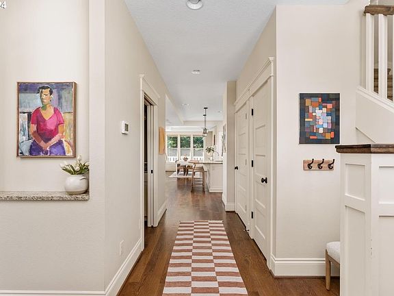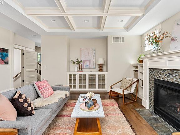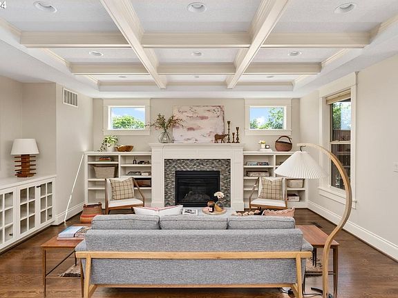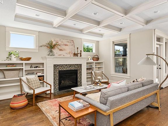 Beautiful Sellwood Craftsman with a 92 Walk Score. Spacious and well-appointed floor plan featuring an open main floor with a spacious living room with gas fireplace, box beam ceilings and built-in bookcases. The dining area features wainscoting with dish rail and convenient access to the covered deck. The gourmet kitchen is an entertainer's dream; huge island with counter seating, tons of counter space, double ovens, stainless Jenn-Air appliances and pantry with pull-out drawers. Also on the main floor are an office with French doors, a powder room and a laundry room with sink, cabinets, outdoor access and washer/dryer included. The second floor is the bedroom level with 3 bedrooms and 2 bathrooms, including a large primary suite with walk-in closet and spa-like bathroom. The top level is host to the enormous family room. With built-in cabinets, this is the perfect place to watch movies, do game nights, or a great space for kiddos to hang out. The lower level features a 4th bedroom and a full bathroom - ideal for guests. Features include Oak hardwood floors, dual zoned heating & cooling, beautiful millwork, soft-closing drawers and more. Parking is easy in the driveway and in the 2-car tandem garage. At the end of the garage is an additional storage room with custom wine racks. Outdoor spaces include front porch and back deck with tongue & groove ceilings & recessed lighting. The back deck has a privacy fence and a natural gas line for your bbq. On the ground level is a large patio and a grassy area surrounded by trees for privacy. Enjoy top-rated schools, a 92 Walk Score and easy access to all the fantastic things Sellwood has to offer: restaurants, cafes, bars, food pods, the Sellwood Pool and Oaks Amusement Park. Come live the good life!
