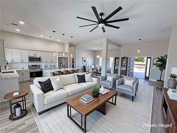 The Primary suite offers a luxurious walk-in shower & oversized closet, while the second suite includes its own walk-in shower & closet—perfect for guests or multi-gen living, 2 spacious bedrooms share a convenient Jack & Jill bathroom with quartz, offering privacy & easy access. Enjoy a chef’s kitchen with all appliances included, a huge walk-in pantry, pop-out TV wall in the family room, a large mudroom off the oversized 865 sf garage, covered back patio & 50 amp RV Hookup.