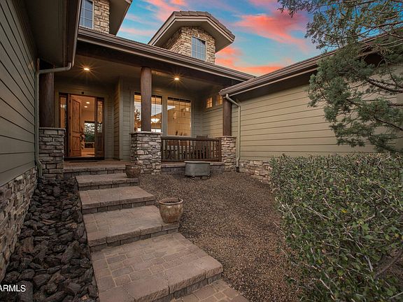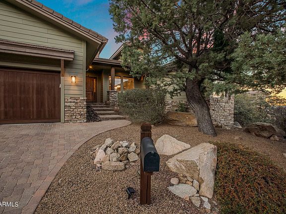 Here's the home you have been looking for! This move in ready home is located in the highly desirable Hassayampa subdivision and features 3 bedrooms, 2 bathrooms, a split floor plan and a 2 car garage. The chefs kitchen was finished with granite countertops, high end Viking SS appliances, a breakfast bar, custom backsplash, pot filler, staggered cabinets with under mount lighting. This home is an entertainers dream and features an open floor plan, a gas fireplace and a wall of windows. The home was finished with wood flooring throughout with the exception of carpet in the bedrooms. The primary bedroom includes a gas fireplace, a sitting area with a private exit and the spa like bathroom features an oversized jetted tub, custom tiled shower and a walk in closet. Take in the views from your covered front patio or step out back to your private backyard with no neighbors behind offering stunning mountain views. Additional upgrades include central vac, soft water unit & R/O system. The low maintenance landscaping helps make this the perfect summer retreat or your new full time residence. Conveniently located 3 miles from downtown and close to shopping, restaurants, hospitals & more.