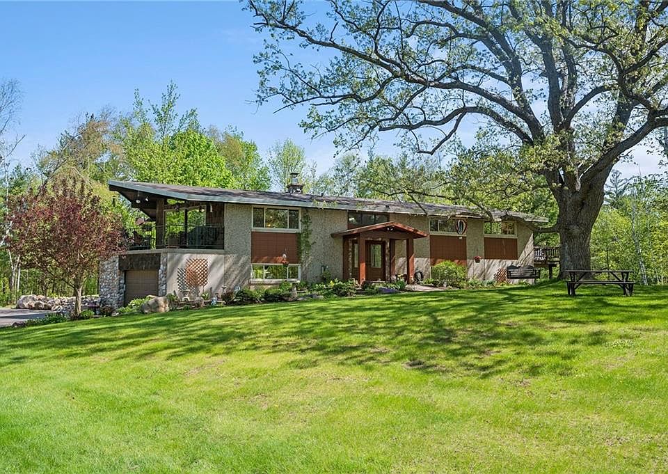 Drive down your long, beautiful tree lined driveway to your fully Custom-built home with concrete walls and floors throughout. Remodeled kitchen/living room with hardwood floors and cherry cabinets. Granite countertops and wood-burning fireplace. large windows provide awesome natural lighting throughout the entire home with a great deck off the kitchen. Impressive owner's suite with spacious bathroom, whirlpool tube, cedar lined walk in closet and private deck overlooking an incredible view of a private pond with an island. Take a private bridge to the island. The lower level includes 2 bedrooms, 1 bath, library and large sauna room. 2 car tuck under garage and a separate 3 car garage with workshop and bonus room for Over-flow guests. The yard includes 2 beautiful gardens and a garden /she shed, with deck overlooking woods. Almost 13 acres of land with established trails throughout and borders thousands of acres of state land. Enjoy the snowmobile and ATV trails. This is a must see!