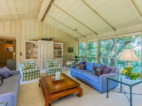 Mid-Century Modern on the Bluff nestled in oak trees with views of the San Joaquin River. First time on the market. 4 bed/3bath plus office. Remodeled Euro-style kitchen. Living room with adobe fireplace is drenched in light; floor to ceiling windows allow views of oaks & river on one side & courtyard pool on the other. Awake in the tree tops in the spacious master w/ remodeled master bath, and in the evening watch sunsets from the deck. This peaceful setting is ideal for anyone desiring the convenience of city living with the serenity of the country. Decor embraces the natural setting with use of honed granite & limestone counters, seagrass carpet, slate tiles, bamboo cabinets, adobe walls, and rough-sawn wood paneling. Approx 1 acre lot offers room for additional parking and to expand front or back gardens. Unfinished basement is ideal for workshop or storage. Pick up Detail Sheet when touring for more info. This property is a rare jewel, take this opportunity to make it your own.