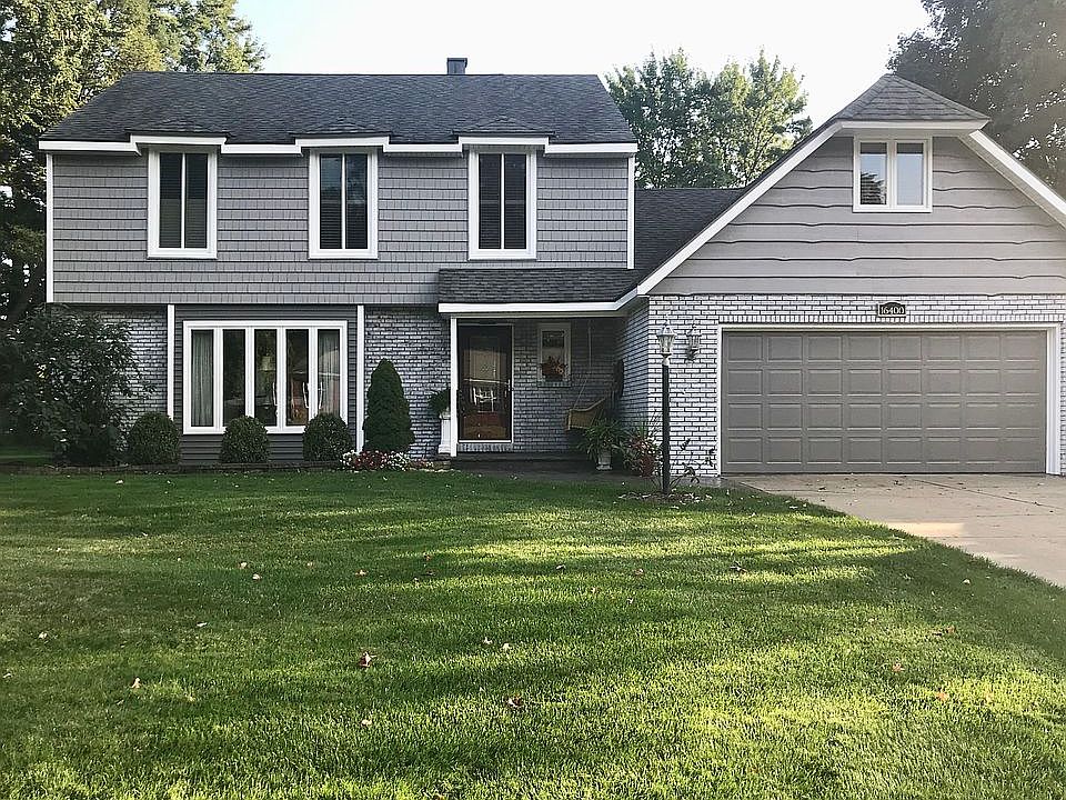 A traditional home that has been updated to maintenance free around 1 1/2 years ago. The widows were replaced as well. The home is a great family home. It seems to have a lot of nooks and crannies. The windows are large and all the upstairs windows have solid wood plantation shutters in antique white. The family room has an updated wall fireplace and a loft is visible with an attractive bannister. The foyer has hard wood floors with an open staircase. New light fixtures throughout, newly painted walls, kitchen and family room update and nice flooring. The basement has a cozy family room as well with a small study separated by French doors. A gazebo is off of our patio surrounded by beautiful flowers. The golf course is a great buffer.