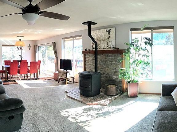 Fantastic views are the first thing you will notice at this tastefully remodeled cabin on the sunny side of Pine Mountain Club! You will then we wowed by the brand new flooring, new updated light fixtures and ceiling fans, fresh paint, and so much more! The living room features expansive windows to enjoy views of the soaring mountain peaks and the golf course and there are oversized sliding glass doors leading to the large deck perfect for entertaining or extending your living space. The living room features a stacked stone hearth with a gorgeous wood mantle and efficient pellet stove. The dining room is adjacent to the living area and comfortably seats six. The kitchen has brand new flooring, brand new stainless steel gas range/stove, stainless refrigerator, farm sink, quartz counters, a new pantry with a one of a kind antique door which oozes rustic charm. You will also find a brand new half bathroom ideal for guests and an efficient laundry area with an included washer and dryer. The master bedroom is spacious and features a huge walk in closet and a newly remodeled ensuite bathroom. Head outside and you will find a workshop with electrical power, a newly enclosed carport, level lot with a circular driveway and tons of parking room, a large backyard area complete with a horseshoe pit. This home has everything you need for a vacation home or full time living. Most furniture may also be included! Schedule a showing today!