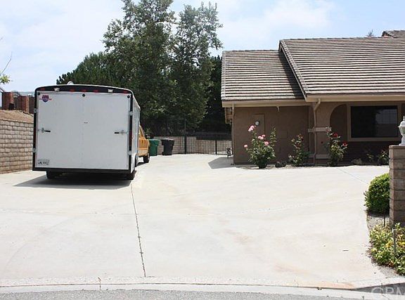 Secluded large Single story Woodcrest Ranch home in a secluded area offers 4385 sf on .85 of an acre. Two Large entertaining rooms with gorgeous brick fireplaces, one offers covered outdoor patio. Kitchen offers brand new granite counter tops, upscale high end stainless steel appliances, new paint and carpet, new tile in the entryway, kitchen, laundry room and bathroom. Large master suite with huge master bath offers unique free standing bathtub, separate shower and large vanity with dual sinks. Another very large bedroom with private bath. Two more bedrooms share a Jack and Jill large bathroom. Central vacuum system. Large RV area, circular driveway for easy in and out access. Front yard offers hardscape landscaped. Backyard has a covered patio area. and large yard. Room for horses, toys, or whatever.