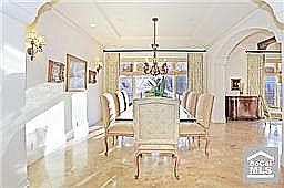 Mediterranean Tuscan waterfront estate with 147 foot boat dock with 2 ramp and 150 foot waterfront deck. Towering entry with 26 foot ceiling, great room, formal dining, den/office, bonus room, 3 interior fireplaces, gourmet granite center island kitchen with state of the art appliances, custom cabinetry throughout, extensive use of 24 inch Colisseum stone floors, master suite with luxurious master bath, marble shower and flooring, hardwood up the stairs and on the second level. Barbecue station with fireplace and seating area, designer fixtures and waterfront spa. This home shows better than an model, has been exquisitely desiged and decorated. The seller may negotiate some furnishings.
