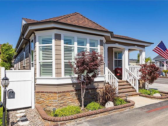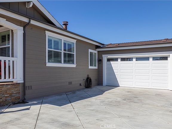 Have you always dreamed of living near the water in Huntington Beach? Imagine living roughly one quarter mile away from Huntington Harbor, in a highly maintained three-bedroom, two-bathroom home on a corner lot, with roughly 1650 square feet of living space plus an extra-large stamped concrete driveway with an attached garage, all nestled in a 55+ Condominium community of manufactured homes where residents own their own land. Amenities include a clubhouse, gym, and a sparkling pool. Stop dreaming and make this highly detailed home yours! As you enter, you’ll immediately notice the nine-foot ceiling height throughout the home, which adds a sense of true openness! Coffered/tray ceilings in the living room, dining area and master bedroom elicit a luxurious architectural flourish, while the oversized tub and large walk-in closet provide a finishing touch to the well-appointed master bathroom. Next, you’ll take in the well-designed kitchen, with beautiful stone countertops adorning the kitchen and large island, followed by a walk-in pantry, exquisite cabinetry, pendant and downlighting and updated appliances. This home boasts so many extras that demonstrate thoughtful design and investment including high-quality shutters (approximately one-year old), a “Solatube” style skylight in bath #1, an exterior door in the MBR leading to private patio, dimmers, hide-a-screen on front door, automated sprinklers, and exterior landscape lighting, etc.