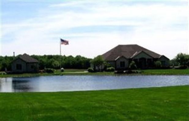 Your own private 27 acre retreat! Look out the 13 x 7 picture window to view your pond, grass, farm, and trees! Car buffs will love the 2 heated garages, 3 car attached and 4 car in the out building;7 cars total. Even the out building floor is heated! Second Staircase from garage to basement workshop. Quality built and is tornado proof! Maple kitchen with pull-outs, center island, loads of drawers, all kitchen appliances stay! Great room with vaulted ceiling and Master Bedroom has tray ceiling and walk in closet is 16 x 6! Master Bath w/ 2 sinks, jetted tub, large shower, beautiful ceramic tiled, loads of windows and vaulted ceiling! First Floor Laundry! Solid oak 6 panel doors throughout, 10' ceiling in most of home, 12' ceilings Living Room and Foyer! Real wood flooring in Living Room; central vacuum in house and basement; industrial strength 44 x 15 workshop w/3 220 outlets! Truly a home of quality!