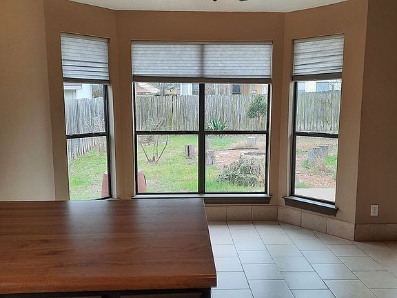 Newly available 3-bedroom, 2-bathroom single family home in Pflugerville. 1,700 sq. ft. of living space with a 2-car garage and large, well-maintained and manicured backyard perfect for entertaining or a family "night out" with young children. Semi-open floor plan with large windows and vaulted ceilings bring ample light and space to the split living/kitchen/dining area. Kitchen has newer stainless-steel refrigerator and generous storage space. Master bedroom has direct access to the back patio, a large footprint and sufficient closet space. Two additional bedrooms include lighted closets and windows. Large master bath has glassed-in garden-style tub, two separate sinks and separate water closet for more privacy. High-quality tile, vinyl flooring and ceiling fans throughout. Centrally-located fireplace. Separate laundry room with storage and washer/dryer hookups. Property is fitted with solar energy panels, so Tenant can save on electricity bills. Access to HOA pool included, located approximately 2 miles away.