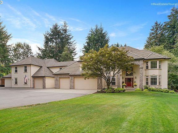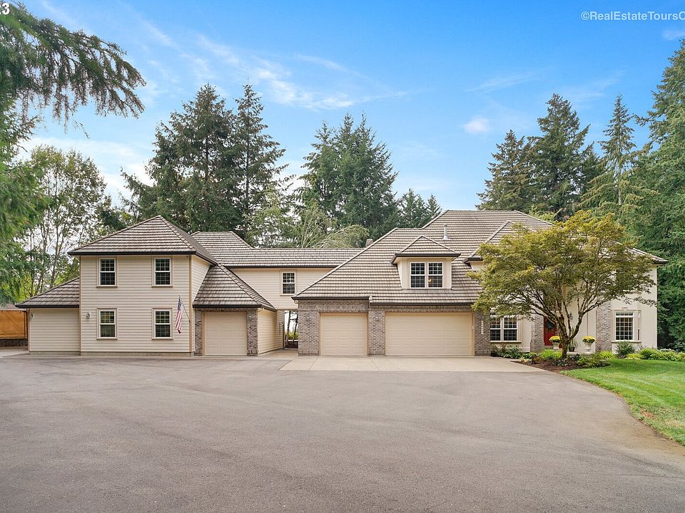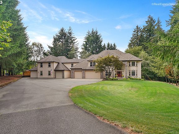 Marvel at this custom-built, gated-entry traditional home on over 3.5 picturesque acres. Sprawling interior featuring 6 bedrooms, 2 home-offices, media/flex room, and themed playroom. You'll be inspired to cook in the immaculate kitchen with Tuscan detailed backsplash, Soprano quartz countertops, Miele appliances, spacious walk in- pantry, and oak cabinets. Capacious primary suite with private balcony overlooking the wooded parcel- perfect for enjoying the spectacular Oregon Sunset. Potential abounds in the full workshop/studio space with loads of storage: perfect for car enthusiasts, at-home businesses, home gyms, or an art studio. Oversized and attached 3 bay garage in addition to RV Parking and storage shed for exterior tools and outdoor adventuring equipment. Entertaining outside is a dream with so many spaces to roam: new decking, new built-in firepit, children's 2-story playhouse, wooded trail, and pasture views. Just a brief drive to Highway 26 and the Portland Hi-tech Corridor. With Pumpkin Ridge Golf Course just around the corner you can enjoy a quick 9-holes before retiring back to privacy at 16401 NW Pumpkin Ridge Dr.