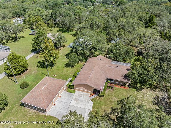 You don't want to miss out on this large unique property! This exceptionally well manicured 3 bedroom 2 bath home sits on 1.30 acres and is zoned for pigeons. The 3 car garage, and the large 38'x30'x14' garage in the back yard are perfect for any car enthusiast. As you enter the home, you are pleasantly invited into the open the floor plan that is flooded with bright natural light. The office nook is tucked away to hide any office work from the common areas. The laundry room is also the perfect game room, theater room, or perfect for any other entertainment purposes. The beautiful modernized renovated kitchen has ample counter space and storage for prepping any meal. The extra 30'x14'x10' storage shed in the back yard is great for storing lawn equipment and any extra large toys such as a side by side. Conveniently located close to the Suncoast Parkway, grocery stores, restaurants, the hospital, and other amenities.