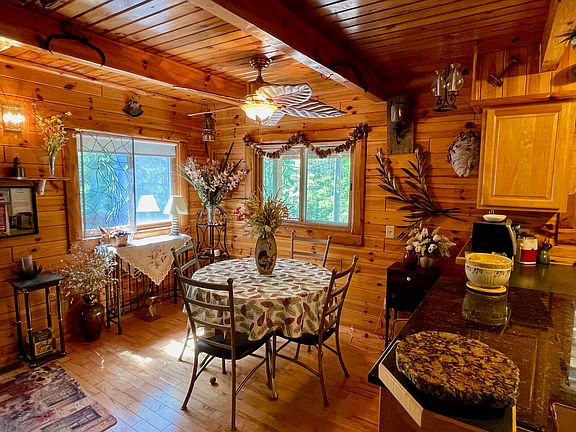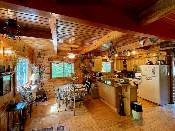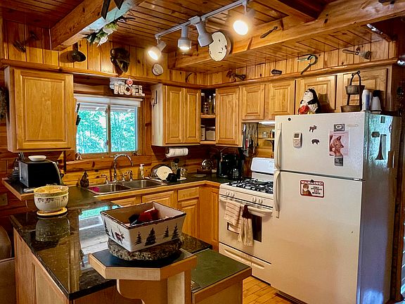 Northwoods chalet just north of the Pigeon River State Forest & less than 7 miles from I-75. Wood interior floor, walls, & ceiling perfectly complements the woods surrounding this home. A massive stone fireplace in the living room has a wood stove insert. A big garage comes with two bays, a workshop area, and lots of storage space beyond the two vehicle bays and 2nd floor storage room. A wood shed attached to the garage provides firewood storage for the house woodstove. The garage has a hook-up for a woodstove but no garage stove conveys with the sale. House wired for portable generator stored in the lower-level, it comes with the sale. Fast Internet available through Verizon or AT&T, both carriers have strong signals at this property.