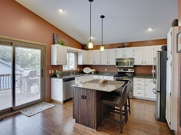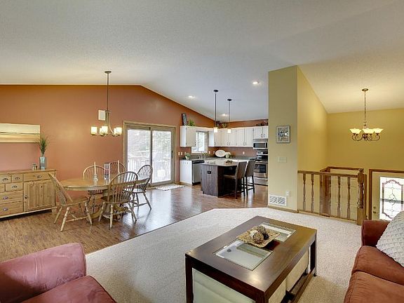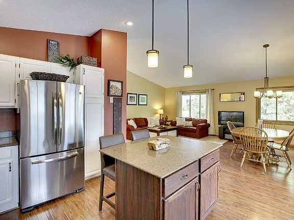 Remarkable 6 bedroom home! All the right kitchen & bathroom updates including silestone counters, stainless appliances & gorgeous subway tiled walk-in glass shower in master. Upper level vaulted ceiling adds to the open concept - in all 3 bedrooms! Warm & inviting lower level w/3 more bedrooms & large family room. Fenced yard complete w/stamped concrete patio, firepit w/flagstone surround, 8x12 shed & beautiful landscaping & trees. Wired home theatre & deck! ISD 196 schools. Newer AC & Furnace., Directions Cedar Ave to West on Griffon Trail. Home is on the right side.