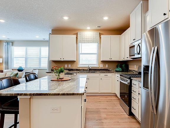 Introducing another new construction opportunity from D.R. Horton, America’s Builder. Welcome to Crystal Park in Lakeville by DR Horton! Crystal Park is a brand-new townhome community less than a mile south of Crystal Lake with quick access to 35W. This stunning 2-story Ely End-unit townhome is impressive at every turn, featuring an open concept main level, including a designer stocked kitchen with white cabinets, granite countertops, stainless appliances, and large-scale center island, oversized family room with magnificent electric fireplace open onto dining room with access to a personal covered patio, 3-bedrooms, a 2nd floor laundry and home office, another private covered balcony off the primary bedroom suite, 26' super deep 2-car garage for lots of storage, smart home package, whole whole house humidifier & much more! Private dog park for your furry family members! Close to trails, parks, and golf courses. Photos are of similar home.