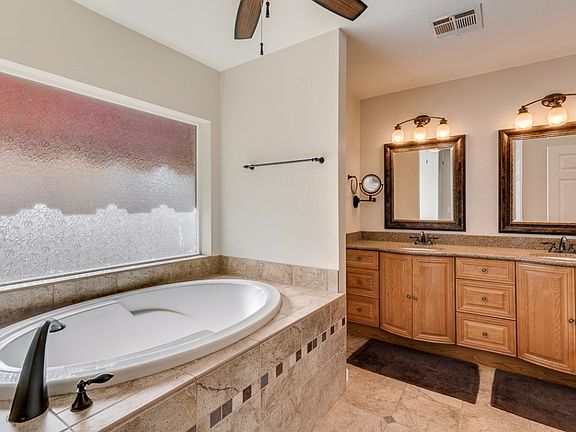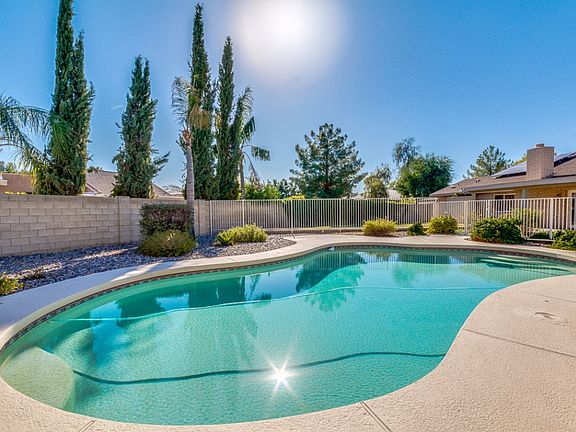 Incredible 4 bed, 2 bath property in Glendale! This corner lot home features lush front landscape, 2 car garage & RV gate. The fabulous upgraded interior boasts vaulted ceilings, open floorplan, dining area, brick fireplace, & plantation shutters in all the right places. The chef kitchen offers stainless steel appliances, gorgeous cabinetry w/ crown molding, granite counters, elegant pendant lighting, and island w/ center sink & breakfast bar. The spacious master suite includes walk-in closet, separate tub & shower, & double sink. You will love the expansive backyard w/ a covered patio, grassy landscape, & fenced pool perfect for entertaining. RV gate to walled off area for additional parking for the toys or just extra storage. This home sit on a spacious quarter acre lot with no HOA.